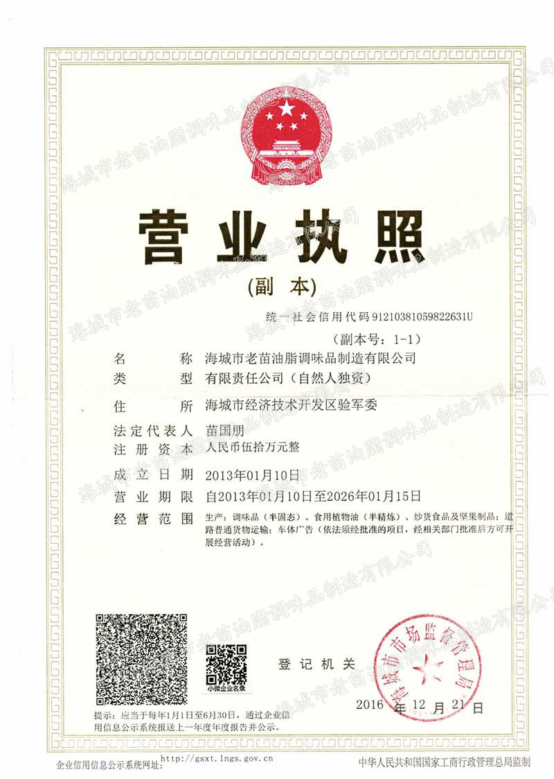海城市老苗油脂調(diào)味品制造有限公司創(chuàng)于1998年是專業(yè)生產(chǎn)和銷售香油、芝麻、芝麻醬、蘇子油、花生醬、鮮麻油等油脂調(diào)味食品公司。